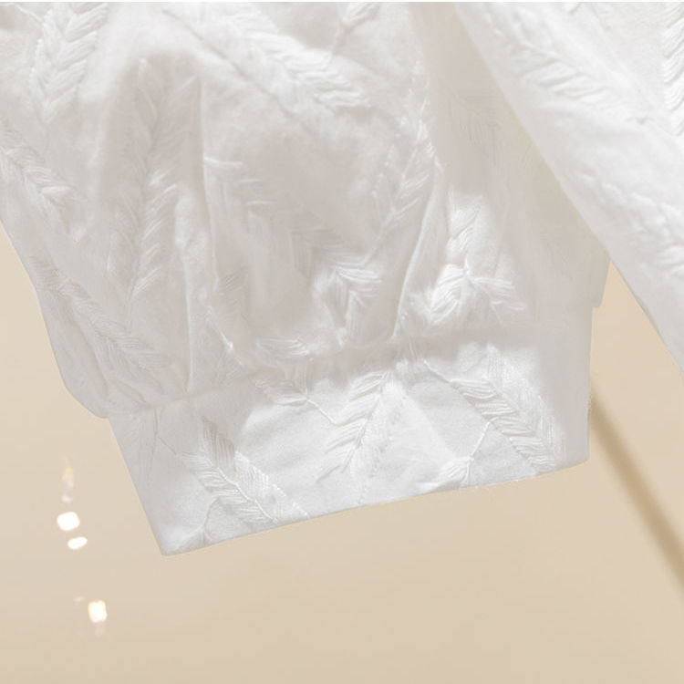 Discover the simple elegance of our cotton blouse with puff sleeves and delicate embroidery. Perfect for everyday style or a casual office look. Made from high-quality cotton for a comfortable feel. Available in classic white, ideal for versatile combinations. Size recommendations: S for 40-50kg, M for 50-57.5kg, L for 57.5-62.5kg, XL for 62.5-72.5kg.