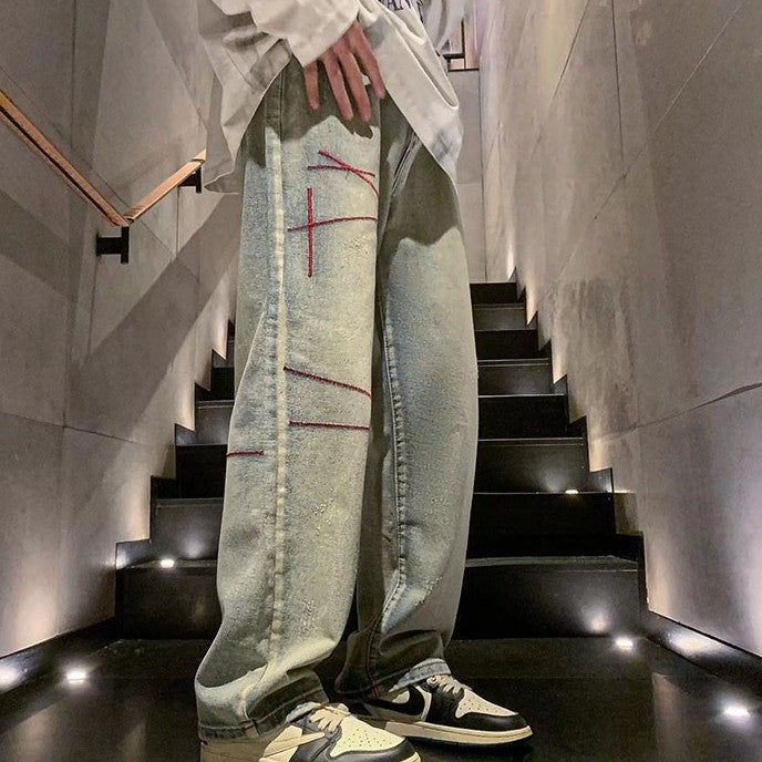 Discover relaxed style with our American relaxed straight jeans for men. Made from high-quality denim, these jeans offer a modern look and great comfort for casual activities. The khaki fabric is versatile for any combination. Available in multiple sizes, perfect for any occasion. Choose your favorite size now!